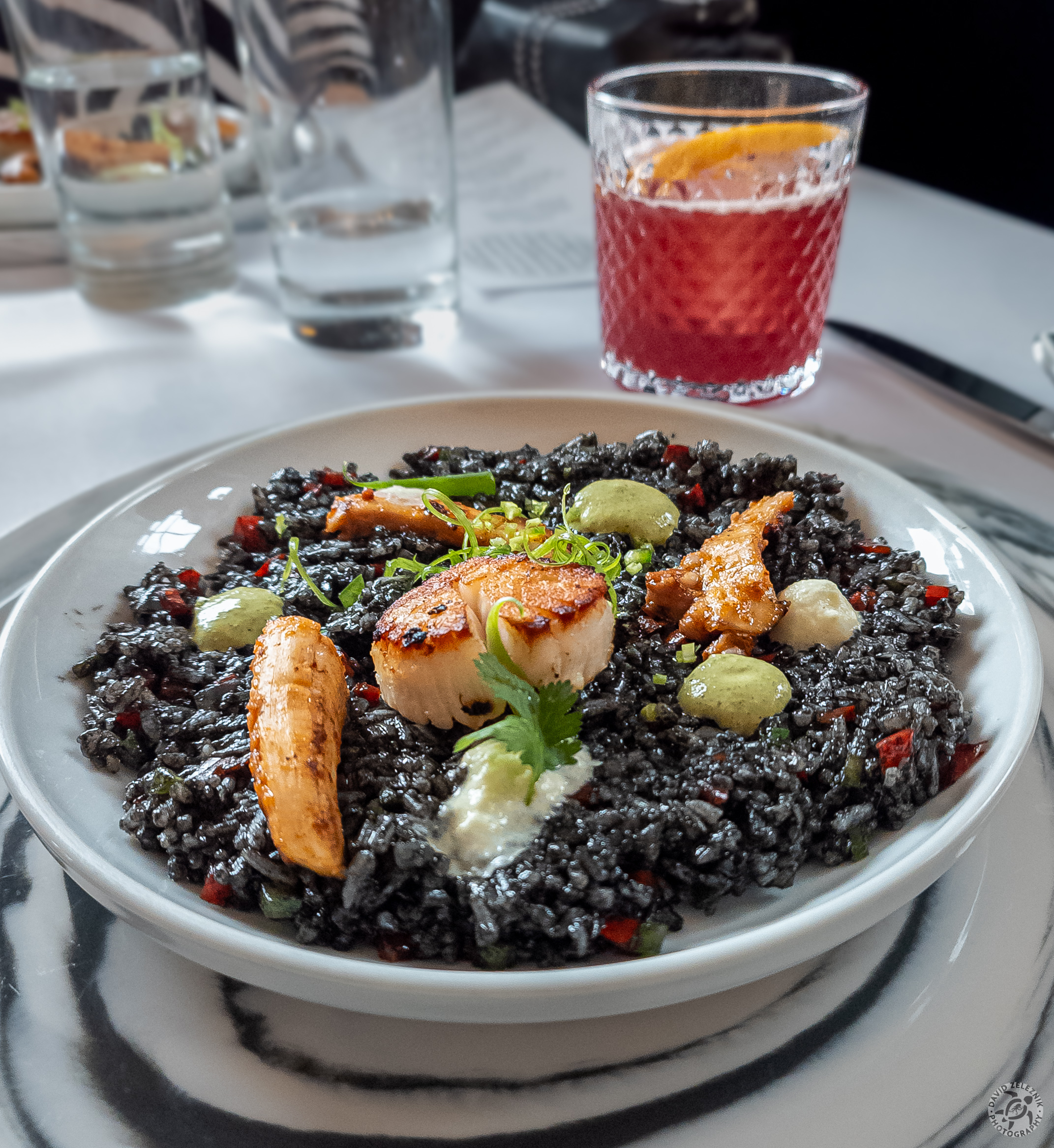5 Course number two was chaufa or Peruvian fried rice using black rice and local scallops and squid. As you can tell, the pisco sour was rapidly replaced by an…