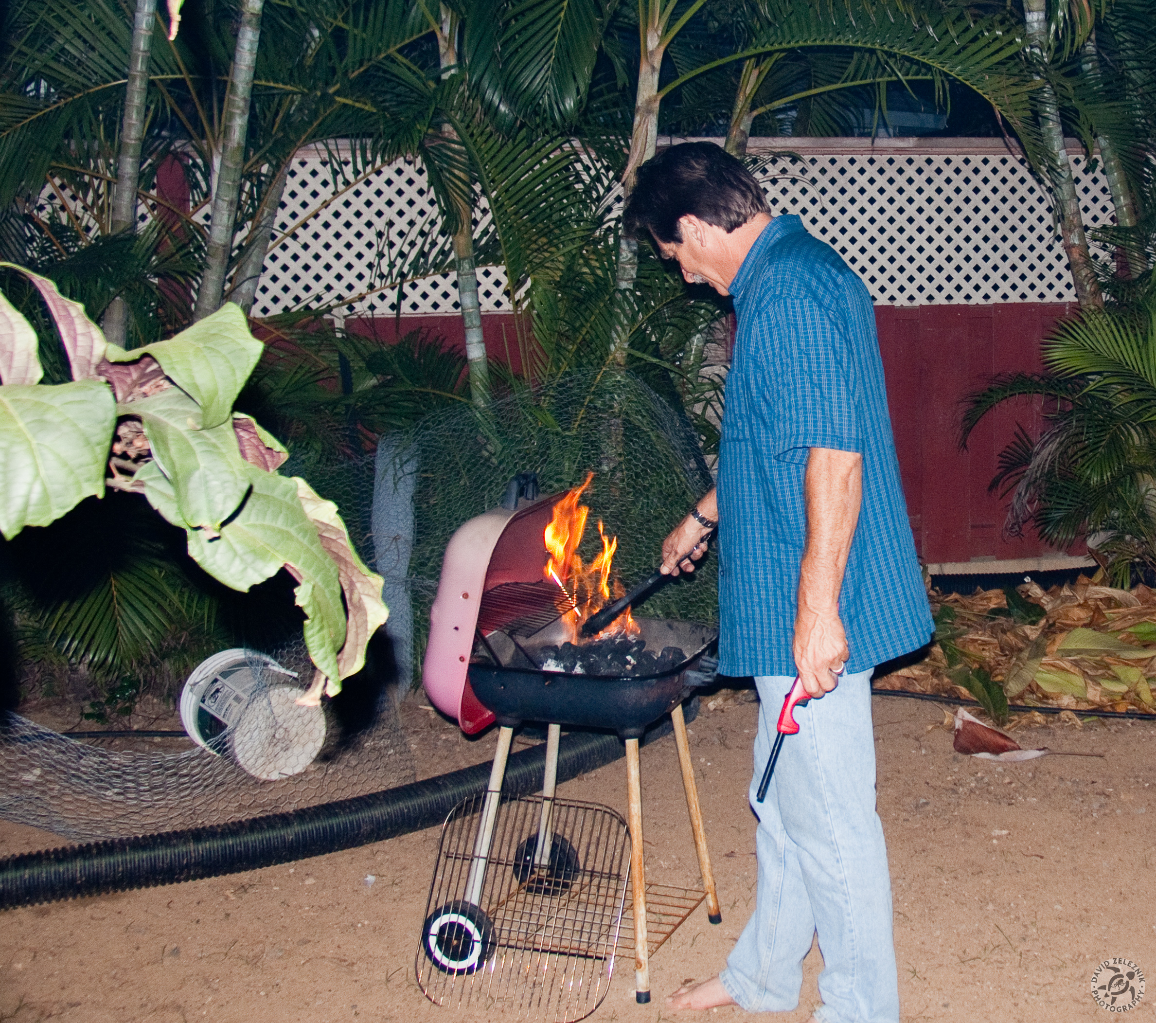 Woody the vegetarian attempts to incinerate our lamb dinner