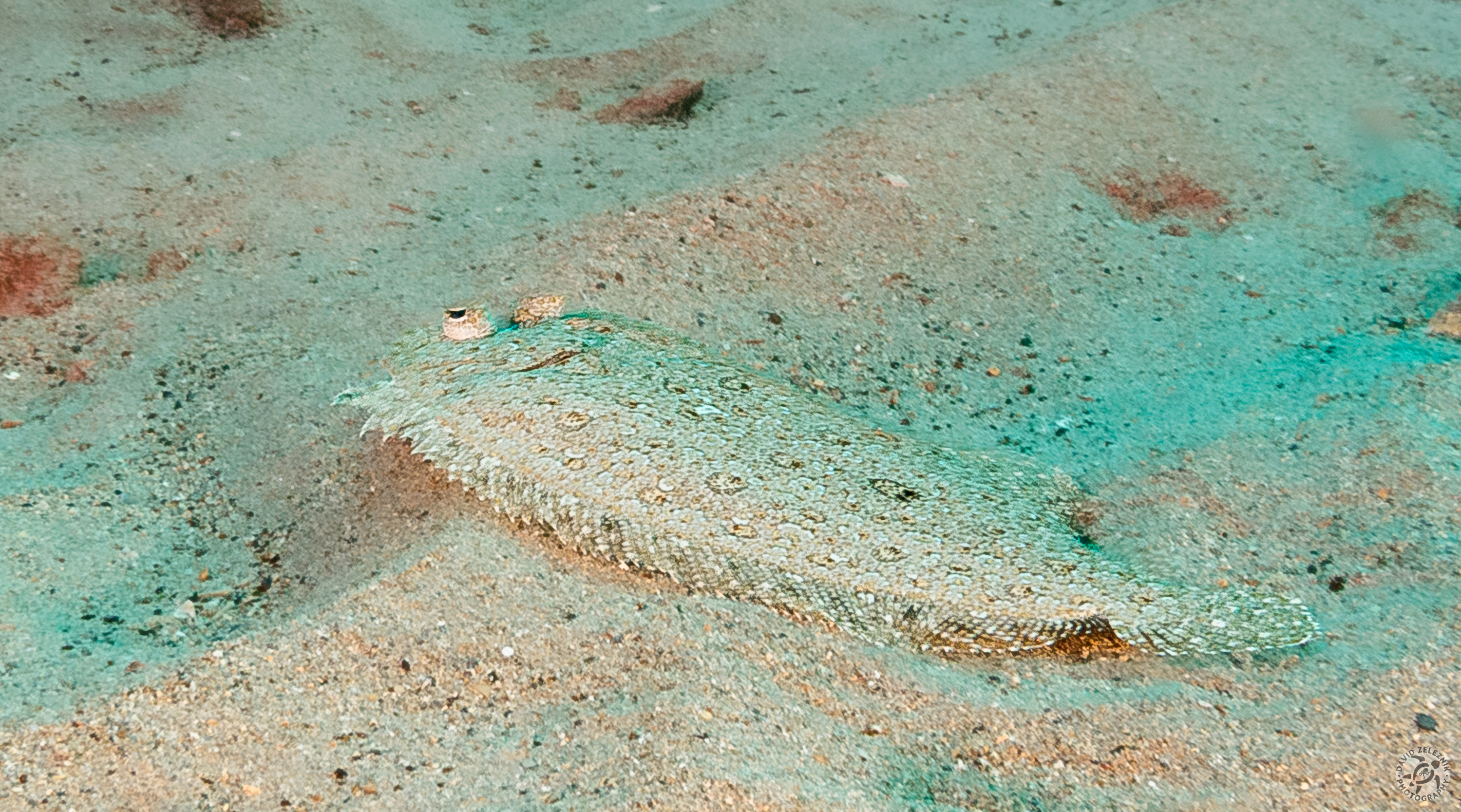 Panther Flounder on the sandy bottom at Koloa Landing, looks similar to the Peacock Flounder we see in the Caribbean