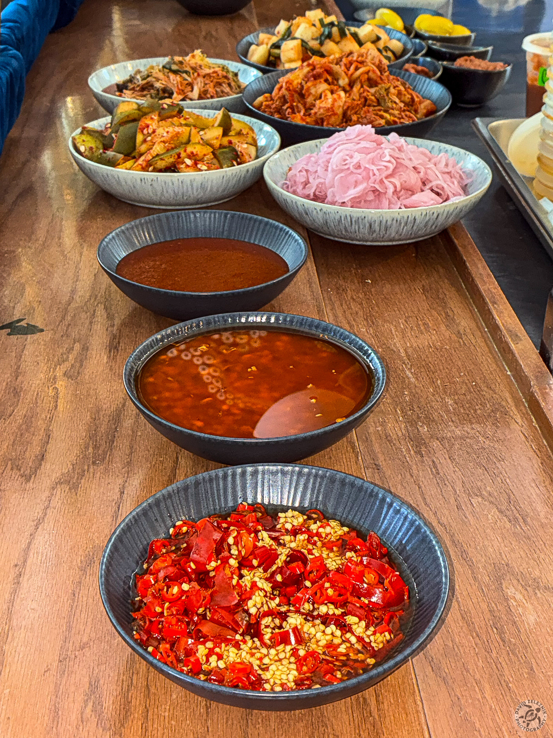 15 Colt had been fermenting for days and the banchan started being put out on the counter: kimchi cabbage, kimchi daikon, kimchi cukes, pickled onions, and several…
