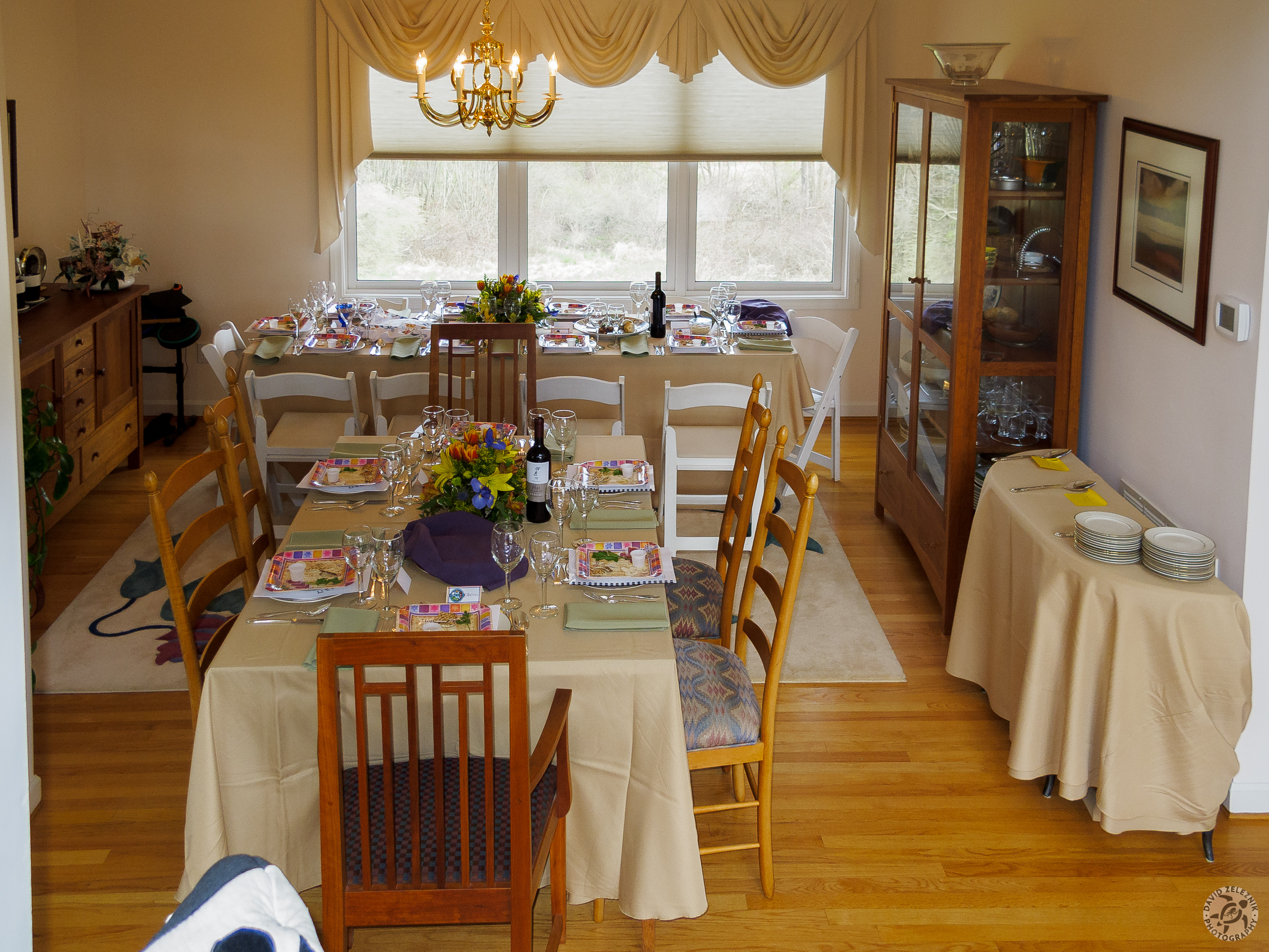 1 Setup prior to the invasion chez Zeleznik/Klein for the second night of Passover. Two tables in the dining room....