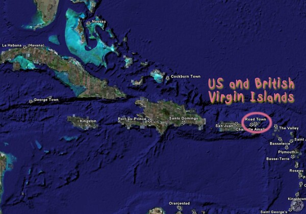 The British Virgin Islands are just east of St. John, in the US Virgin Islands