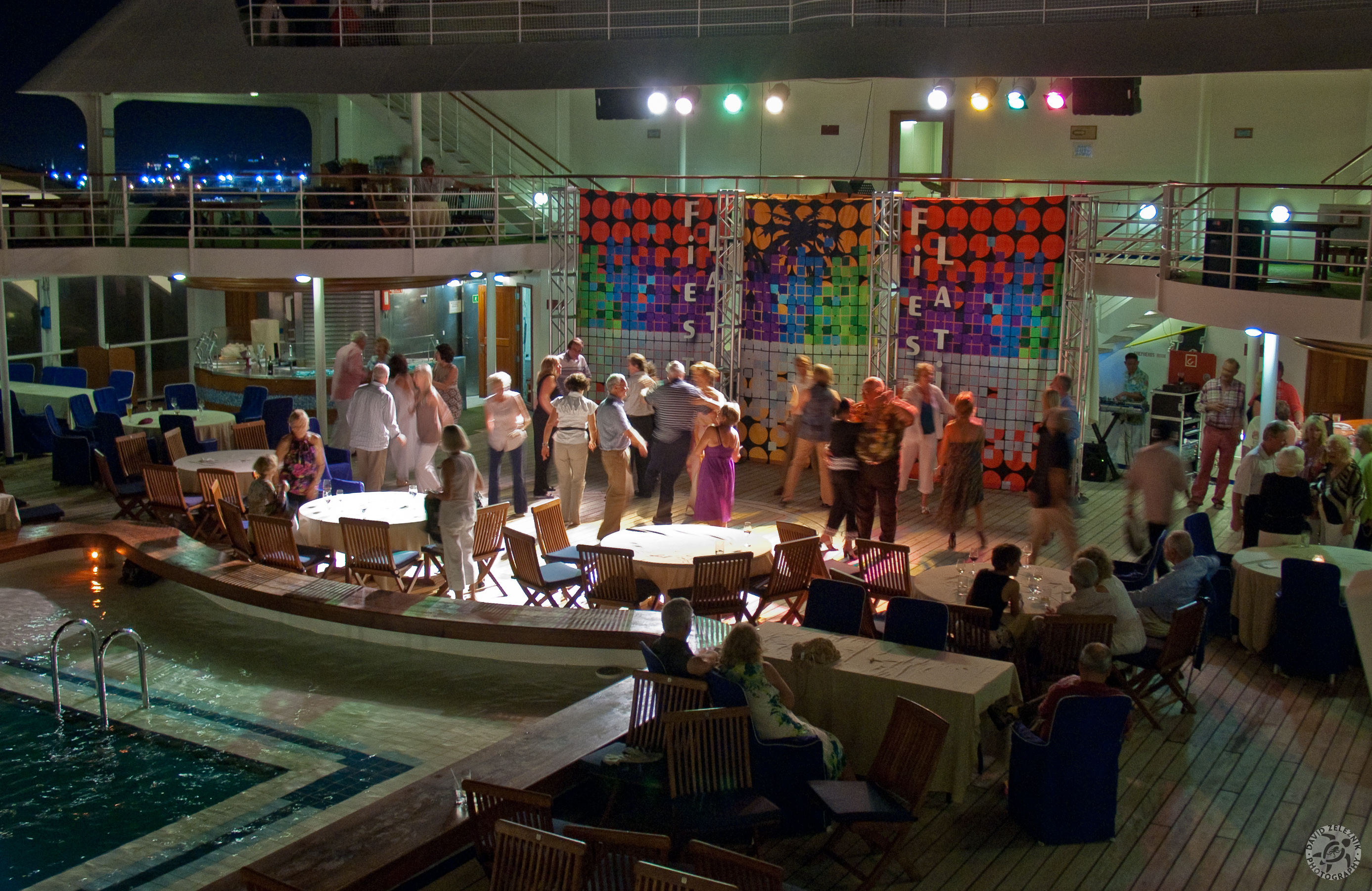 Back onboard, a poolside dance party before we depart San Juan