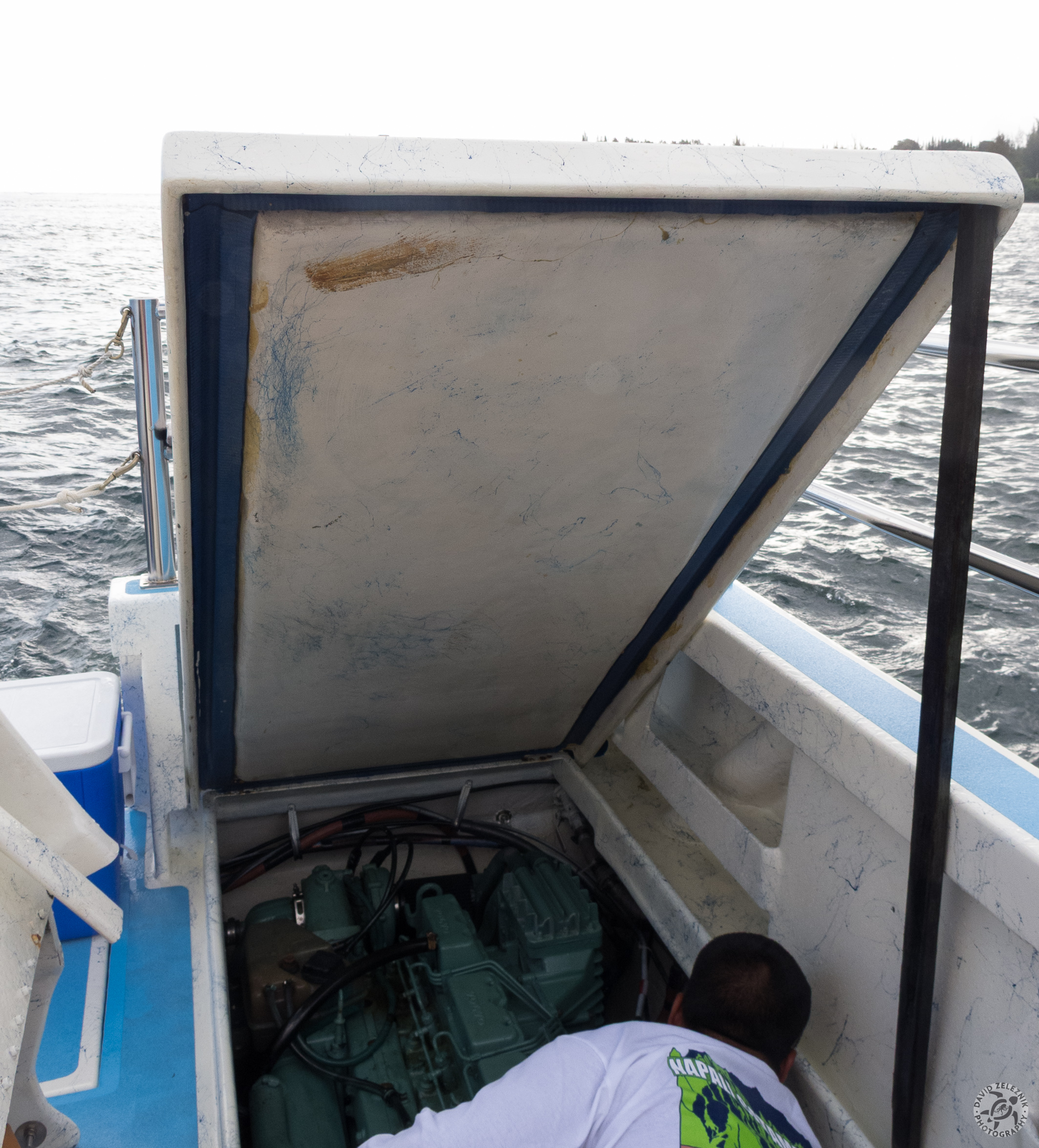 After the talk about what to do in the event of a maritime emergency, our Na Pali trip begins with a detached throttle cable. This wasn't part of the briefing.