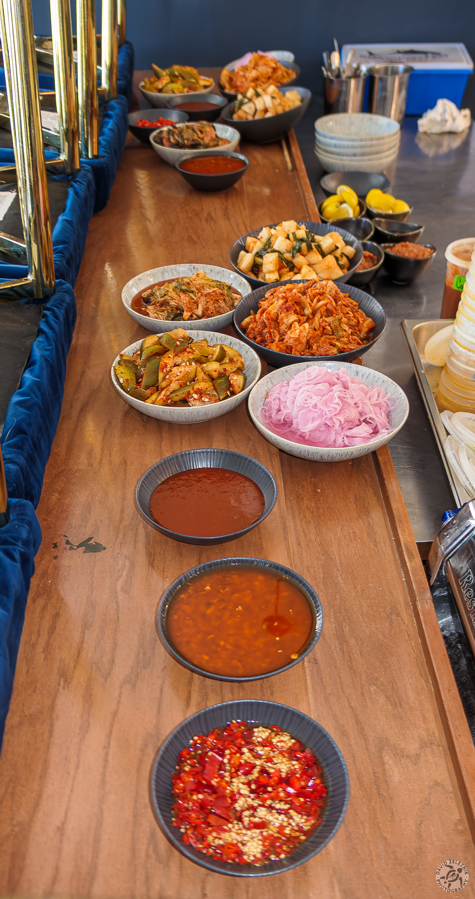 15 Colt had been fermenting for days and the banchan started being put out on the counter: kimchi cabbage, kimchi daikon, kimchi cukes, pickled onions, and several…