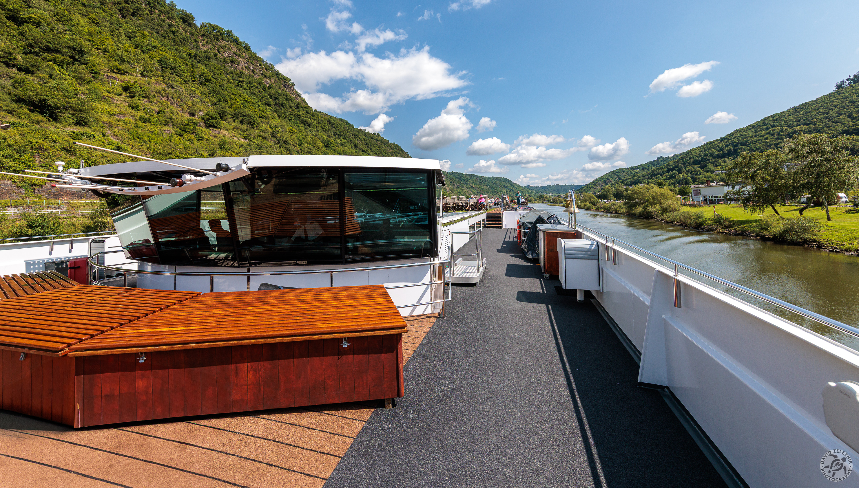 7 Enjoying the beautiful weather on the top deck while cruising up the Moselle River, Reisling vineyards on either side as far as the eye can see 🍷🍷