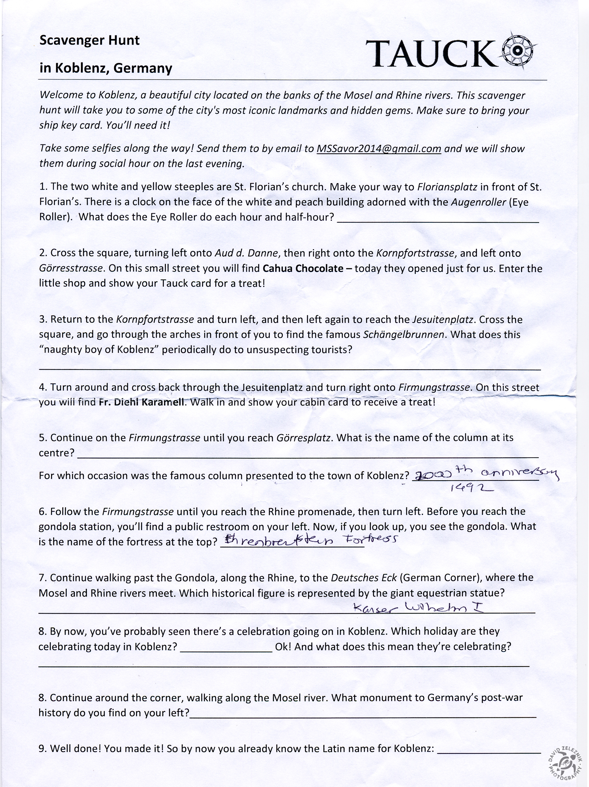 12 Docking in Koblenz late in the day, a scavenger hunt was organized as a fun way for us to visit some key sights in the old city and make it back to the ship in…